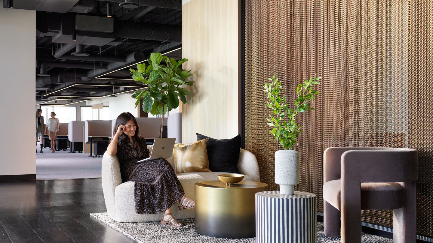 Inspired by the timeless elegance of Coco Chanel, this spec suite design embodies a fusion of sophistication and functionality. The space harmoniously intertwines elements of luxury and innovation, with a dark palette and brass accents paying homage to Chanel’s iconic designs. The atmosphere exudes a sense of opulence, creating an ambiance that stimulates creativity and fosters collaboration.
