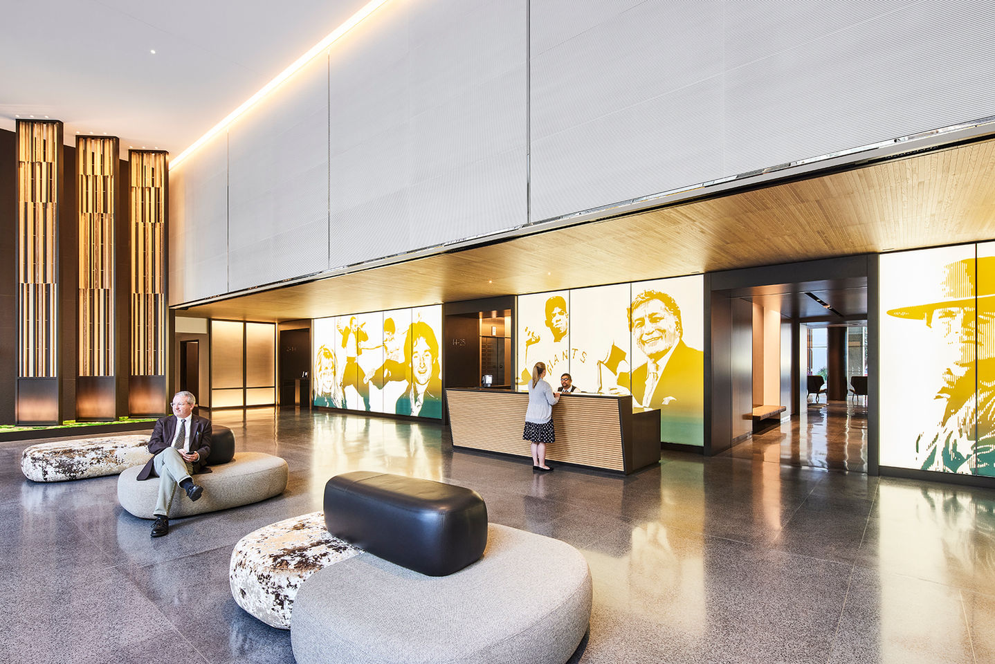 A traditional building entry experience is transformed into a dynamic community hub. The property’s reimagined entry level is anchored by dramatic graphic elements featuring cultural icons native to San Francisco. Vibrant, amenity-rich areas enhance the functionality of the lobby level and elevate its role as a central, interactive hub within the building.